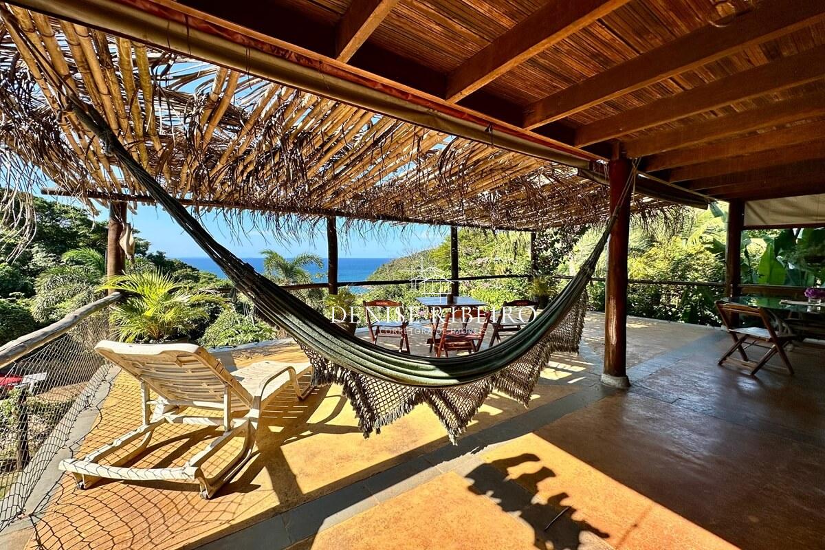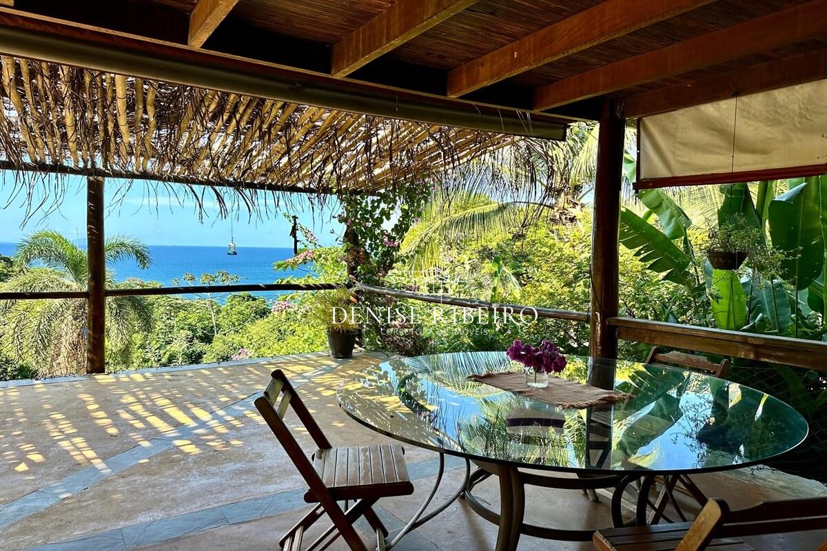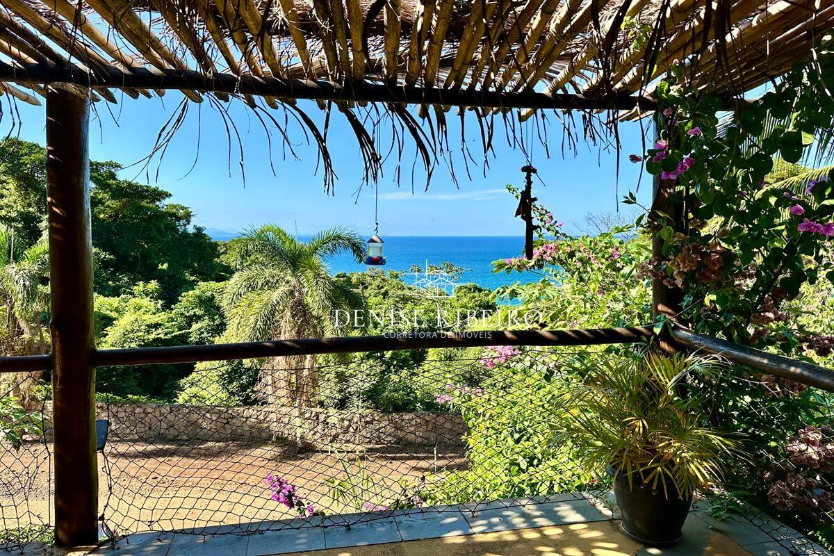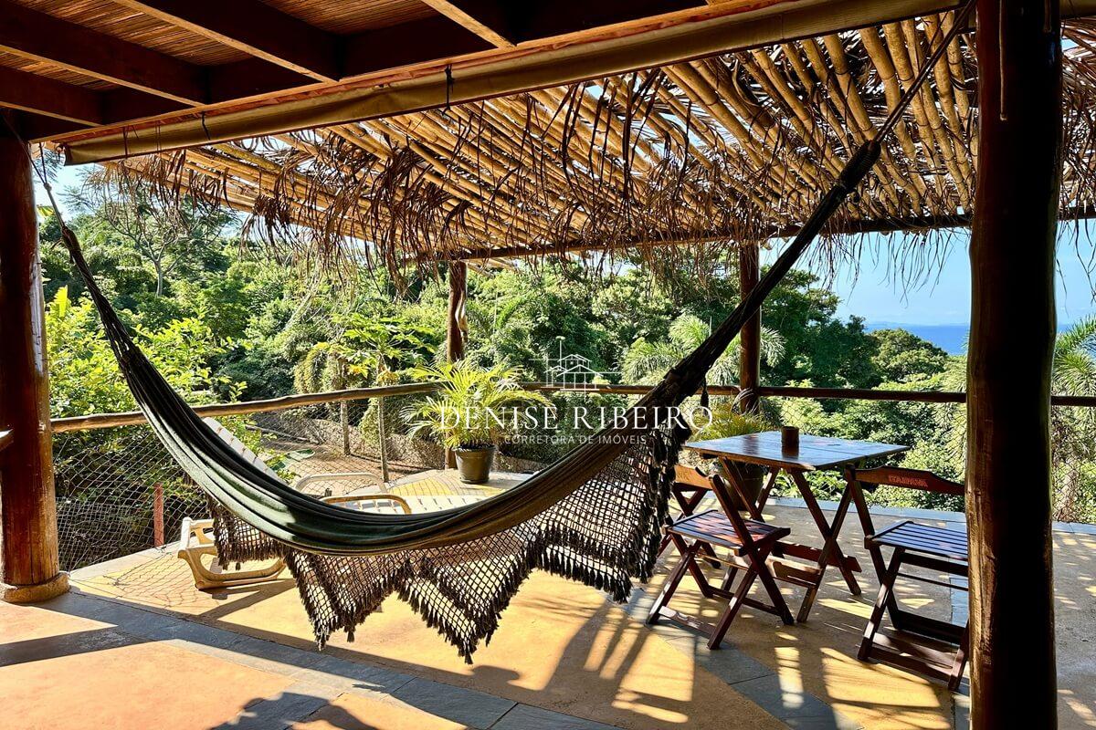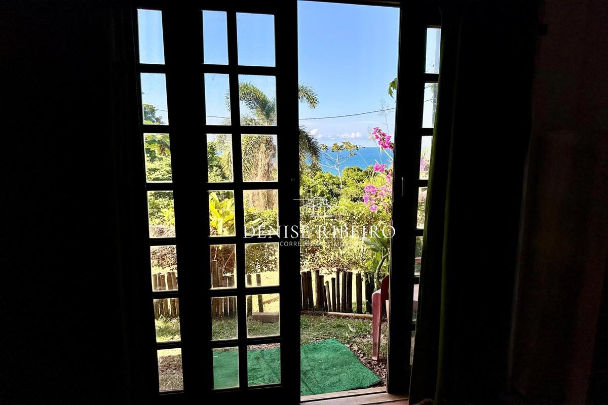 Conta com varanda com vista exuberante para o mar e montanha, espaço para refeição, cozinha completa, 2 suítes sendo uma superior e outra inferior.