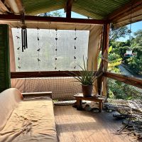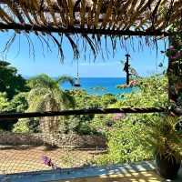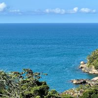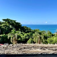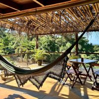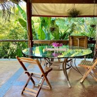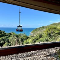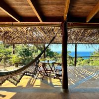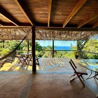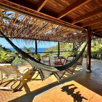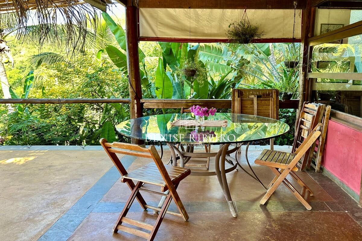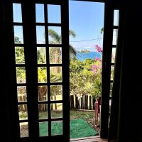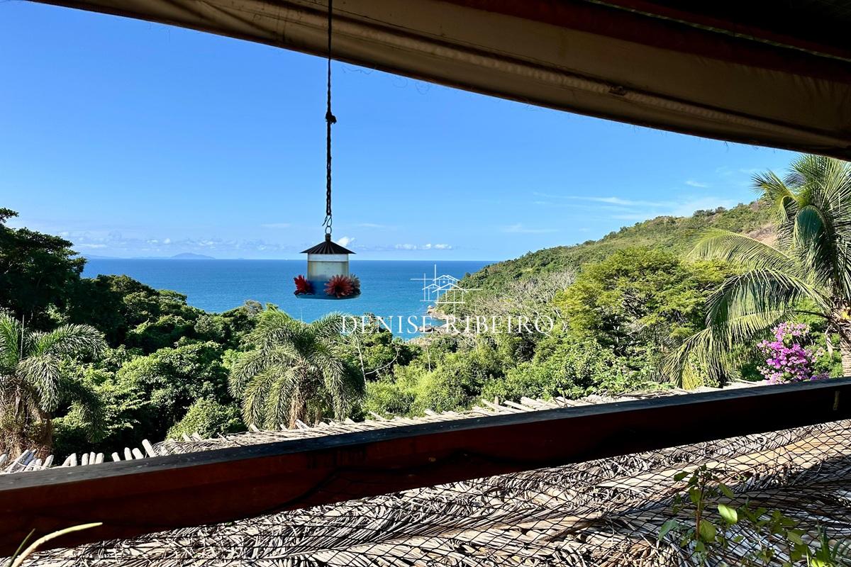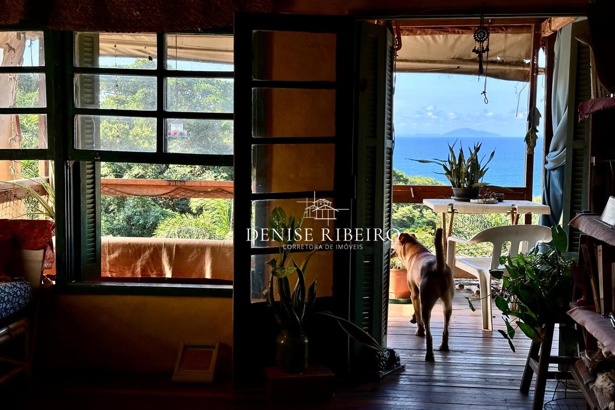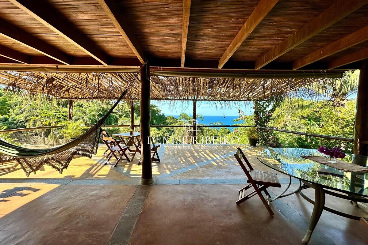 Conta com varanda com vista exuberante para o mar e montanha, espaço para refeição, cozinha completa, 2 suítes sendo uma superior e outra inferior.